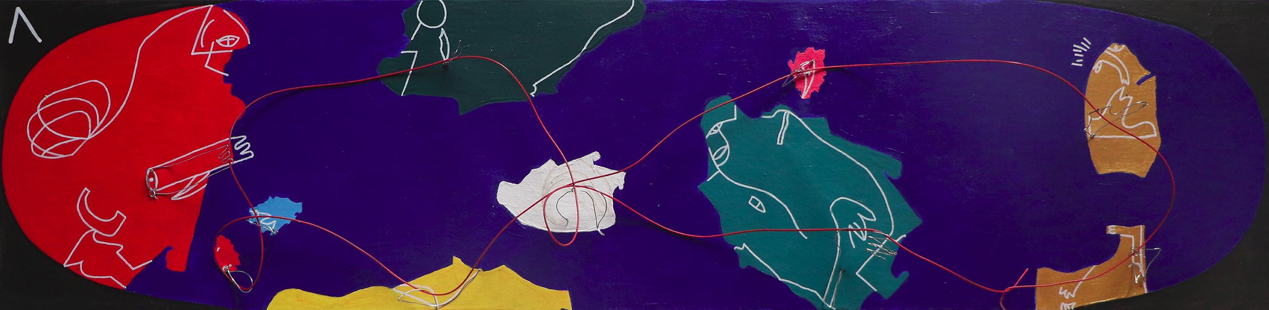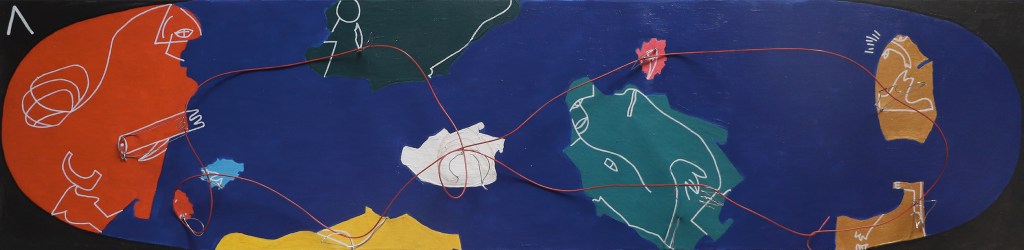 Carried by E. Remoundakis charisma (previous painting), by a Boat-Mermaid and a Boat-Dancer, the lepers fictively leave Spinalonga as they knew it and emancipate from the stigma.