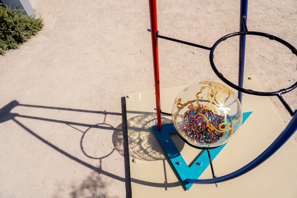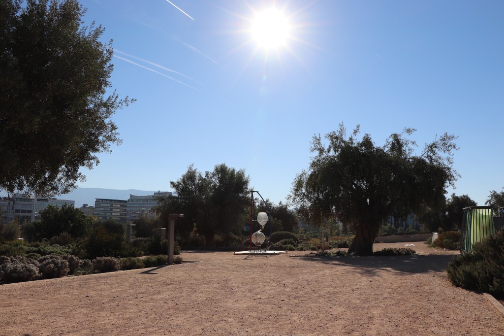 Notre premier souhait était de cacher les billes à l’intérieur des oliviers, dans les veines des troncs, afin que les participants puissent entrer en contact avec les arbres, les étreindre, les escalader et ainsi découvrir joyeusement la bille de couleur prometteuse. Mais cela n’était pas possible dans ce jardin où, pour s’assurer qu’ils ne sont pas maltraités, les arbres sont inaccessibles, comme une beauté sacrée que l’on ne peut observer que de loin. Peut-être serait-il mieux de combiner les deux approches pour faire face au péril planétaire, de ne pas exclure notre contact avec les écosystèmes fragiles mais d’user de précaution ?
