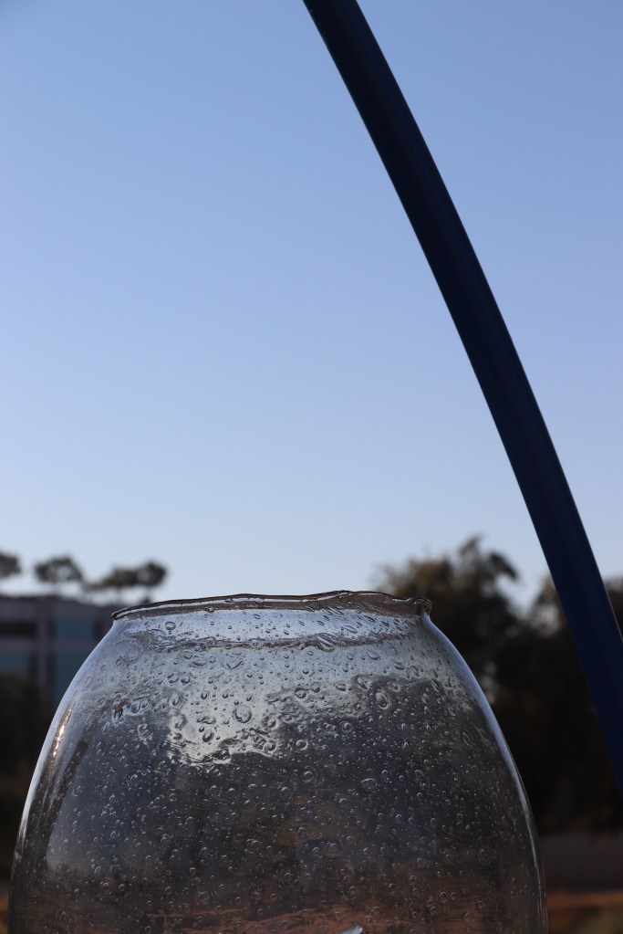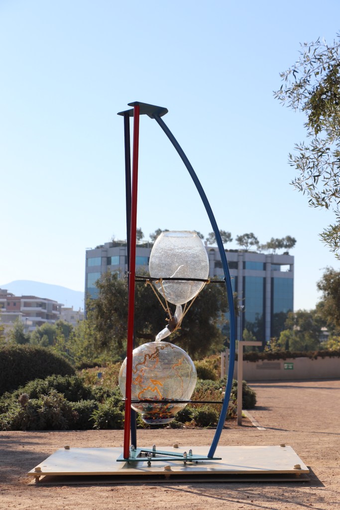 Klepsydrogeios a, pour son premier arrêt, laissé un message puissant dans l’esprit des jeunes et des moins jeunes. Il ne suffit pas de vouloir aider la planète, il faut aussi le faire avec précaution… Chaque sphère de verre soufflé est aussi fragile que la planète, on ne sait pas ce qu’une transgression humaine pourrait entraîner. Ainsi, le lendemain, en plus des nouvelles règles, la sphère supérieure fissurée a été changée et remplacée par son moule en gaze de pharmacie, nous rappelant le soin nécessaire de notre planète.