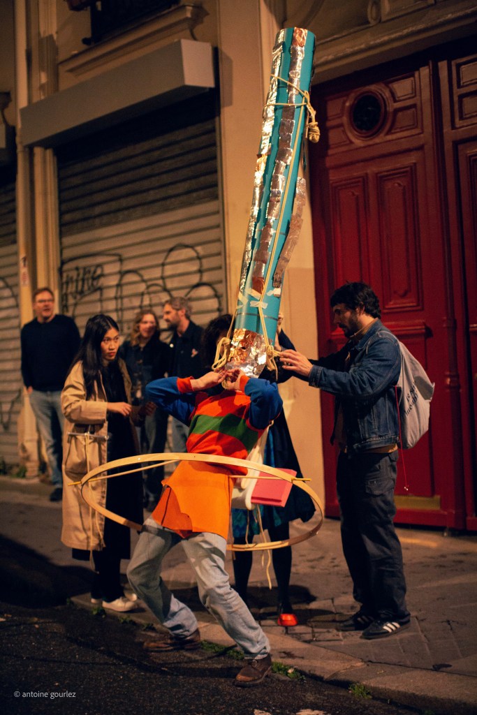 Dans Belleville, habitant·es, artistes et visiteur·es furent invité·es à marcher ensemble en un carnaval, une caravane, une armée d’éclopés, une procession funéraire…