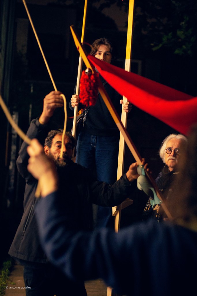 Pendant une résidence à la Villa Belleville d’un mois et demi, prix du Salon de Montrouge 2023, nous préparons le projet “Nuit rouge, tapis blanc” à l’occasion de la Nuit Blanche de Paris 2024.