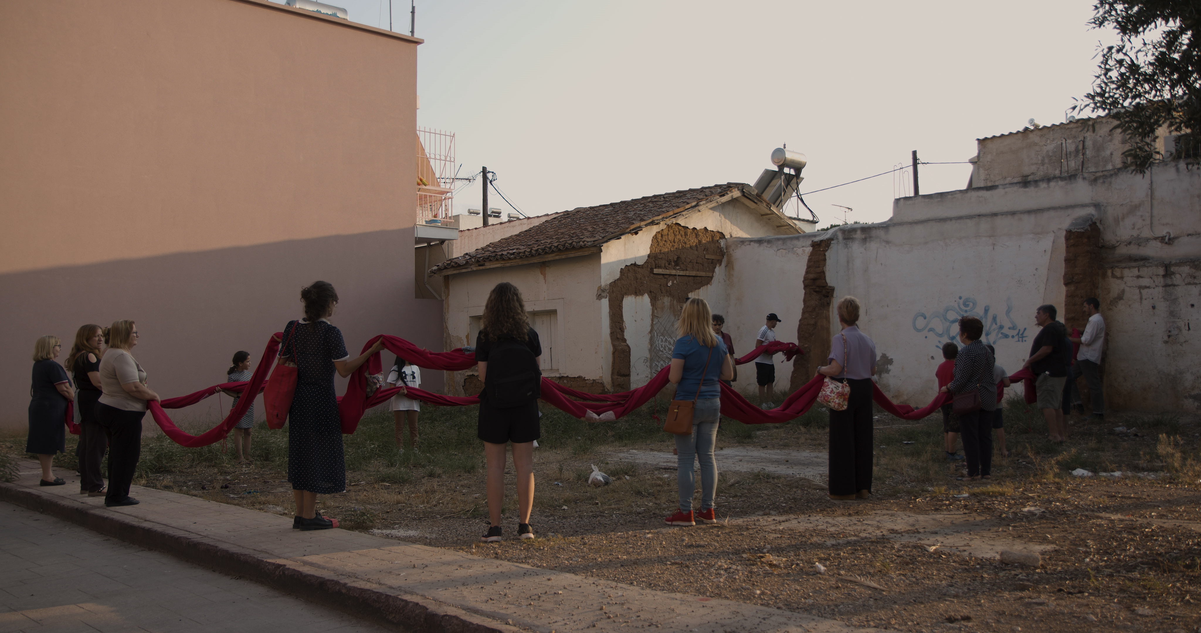 Dans le cadre d’ELEUSIS2023 Capitale européenne de la culture notre projet « Perséphone, le tapis rouge » invite les habitant.es à s’appuyer sur leur mythe fédérateur de Perséphone, incarnée par un tapis rouge qui relie différents quartiers, pour rêver leur avenir ensemble. De symbole aristocratique le tapis rouge est transformé en symbole démocratique, toustes peuvent le fouler, le déplacer, le porter comme un vêtement commun… De site industriel à espace archéologique, de quartier des réfugiés d’Asie mineure à quartier rom, le tapis rouge transite de façon mystérieuse lors de processions muettes à l’exception d’une trompette d’Andreas Polyzogopoulos. Inspirés par les histoires des habitant.es et épousant les spécificités de chaque trajet, nous avons conçu des performances collectives où la frontière public-acteur est labile.